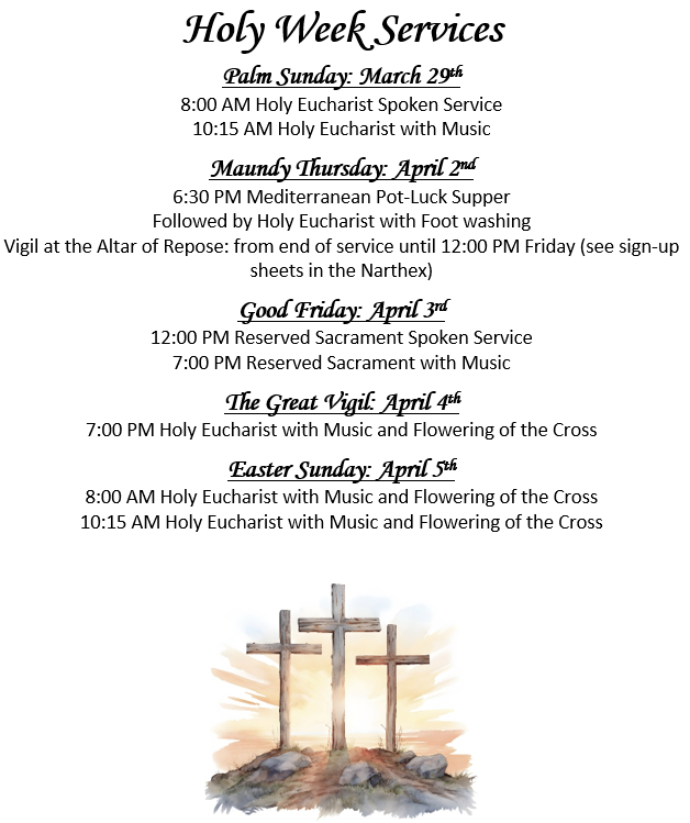 Information about services, classes and important announcements from St. Martin’s can be most easily found in our weekly email.